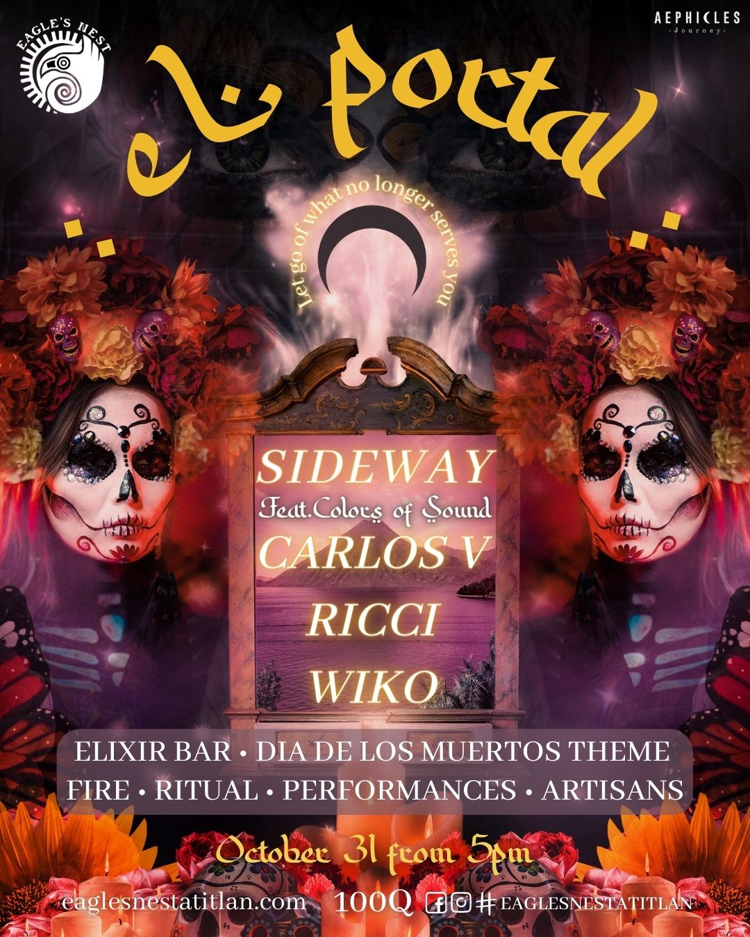 Join us as we gather to let go of what no longer serves us and summon a portal at our new night series El Portàl. Embrace a deeper balance by acknowledging and celebrating your inner yin. Let go of what no longer serves you and set your intentions for the next cycle. El portal is all about celebration, release, sensuality, ritual, the divine feminine, masculine and magic.